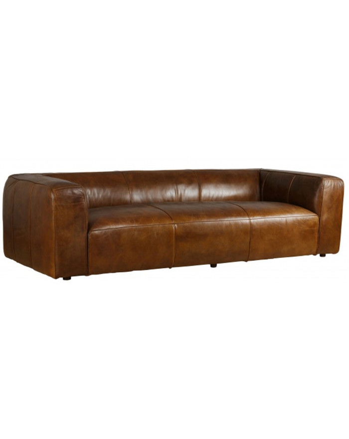 Grand canapé très chic avec ses formes très généreuses et son revêtement en cuir pleine fleur de vachette coloris vintage cigare. Sofa fixe pour 4 personnes. Assise souple dotée d'une excellente tenue sur le long terme. Produit robuste avec cuir véritable haute résistance.