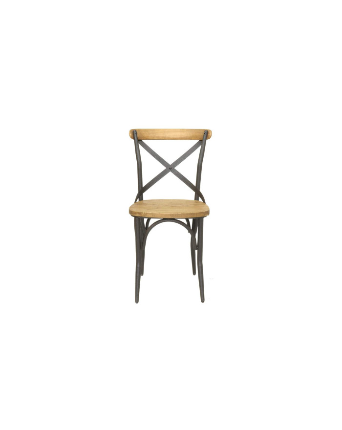 La véritable chaise de bar de bistrot avec son association entre bois vieilli et structure en métal martelé avec son dossier à croisillon de fer. Ce modèle bénéficie d'une conception robuste et d'une durée de vie conséquente.