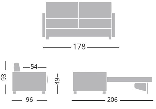 Avec seulement 178 cm de largeur, ses accoudoirs fins limitent l’encombrement.