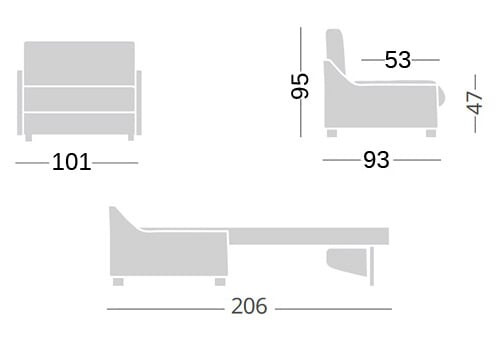 • Encombrement minimum : modèle sans accoudoir très compact, largeur 167 cm avec couchage 140