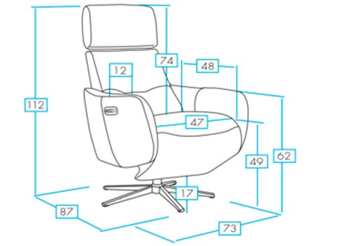• Grand confort avec relax électrique : mécanisme de relaxation électrique gérant indépendamment l'ouverture du repose pieds et l'inclinaison du dossier, garnissage en mousse densité 30 kg/m3, têtière réglable manuellement